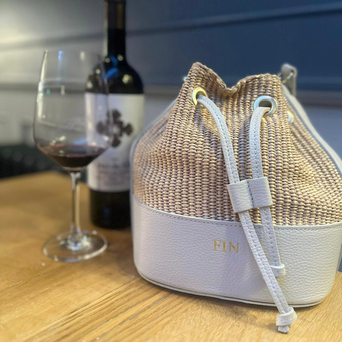 Amara Personalised Leather Raffia Bucket Bag