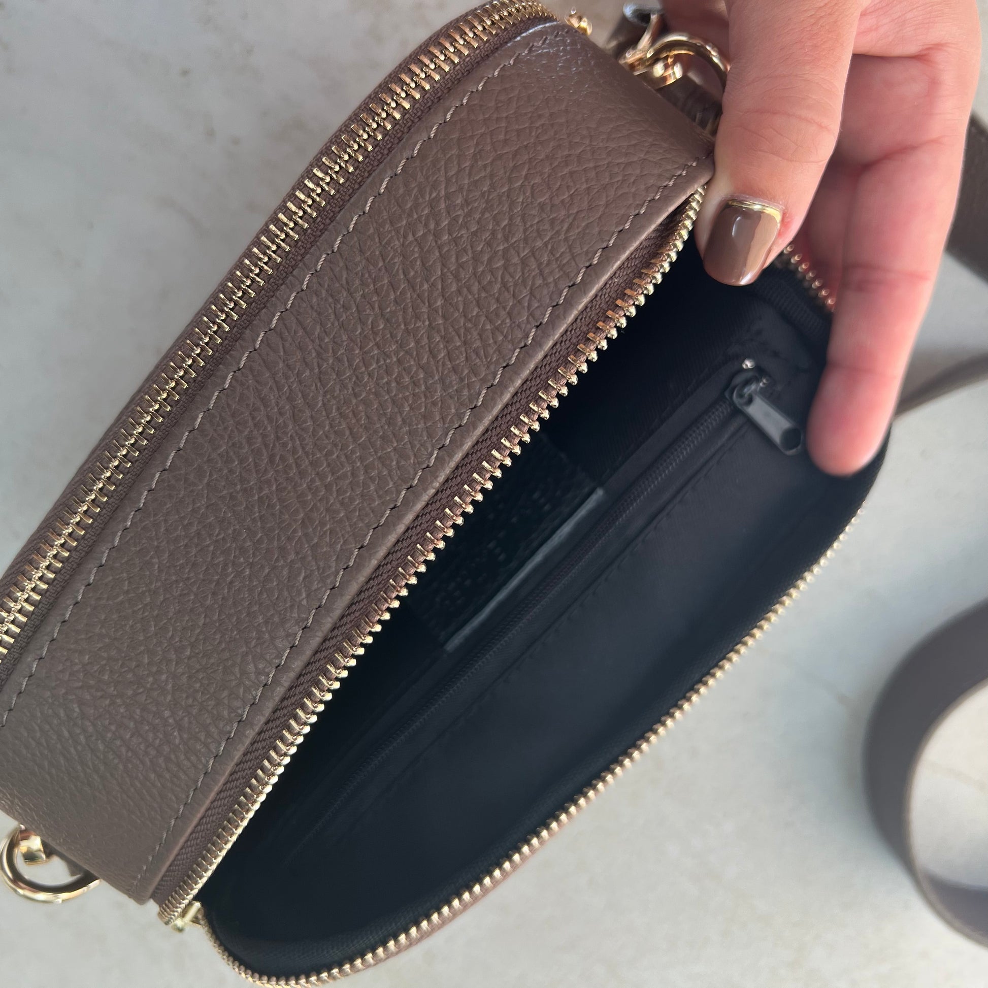 Elegant, timeless, and crafted for everyday luxury. Personalised Elizabeth Leather Crossbody Bag is the perfect blend of style and practicality. Handcrafted from premium Italian leather, this structured crossbody is designed to keep you effortlessly organised while turning heads. Featuring a sleek double-zip design, the Elizabeth offers two separate compartments, giving you ample space to carry your daily essentials. Whether you're heading to brunch, the office, or an evening out, this personalised crossbody bag transitions beautifully from day to night.