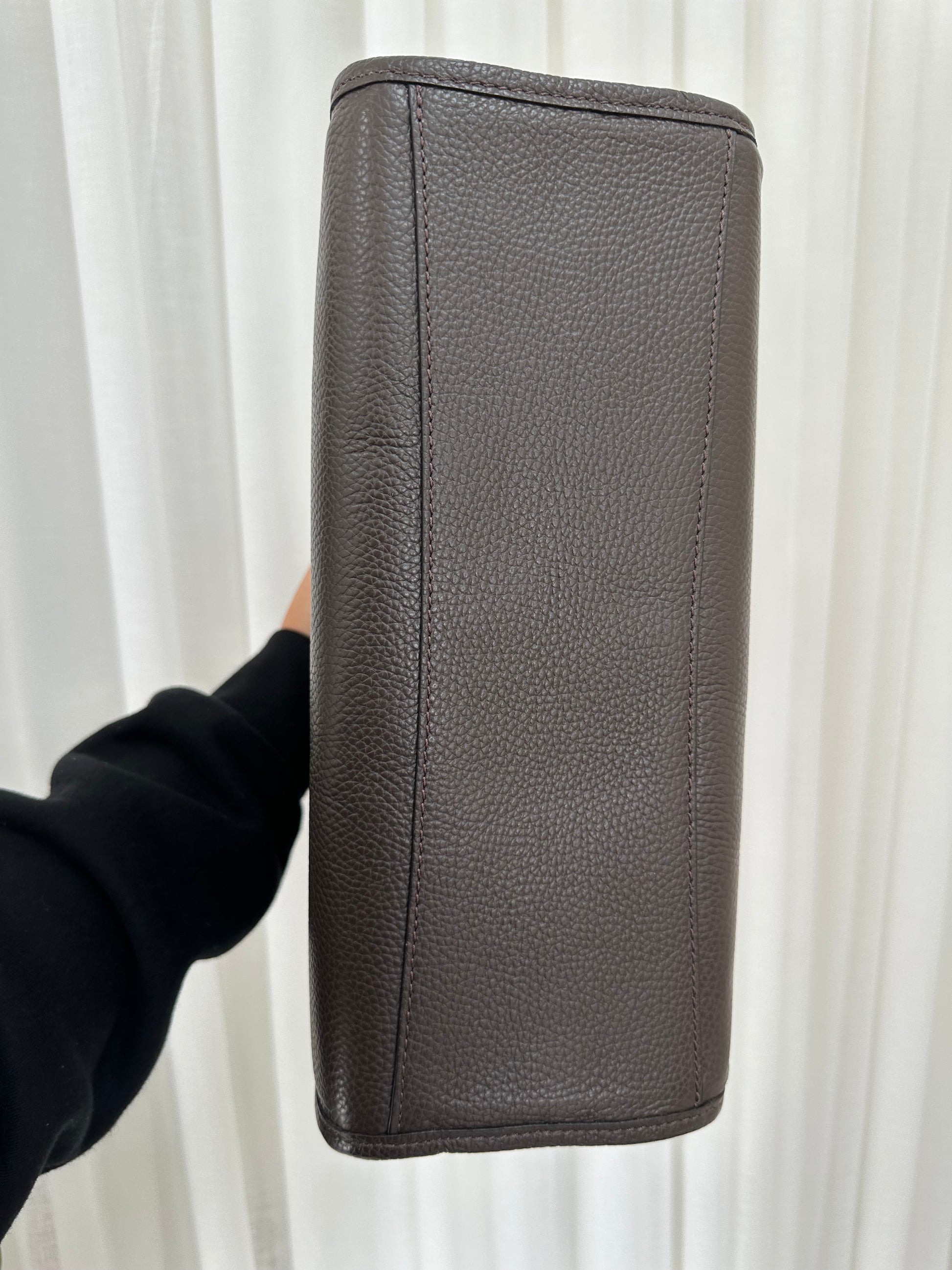 Foil embossing may display tiny breaks on pebbled leather due to natural surface texture. This is normal and part of the handcrafted nature of the bag.